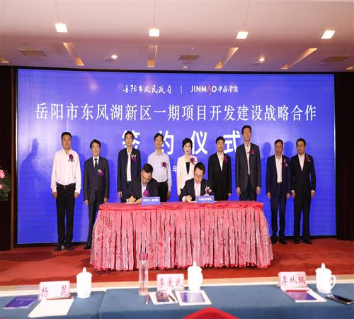 5月13日上午,市政府與中國金茂控股集團有限公司正式簽訂《岳陽市東風湖新區(qū)一期項目開發(fā)建設戰(zhàn)略合作協(xié)議》,這標志著東風湖新區(qū)開發(fā)建設邁出了實質性步伐。市委副書記、市長李愛武出席并致辭,金茂集團總裁李從瑞,市級領導楊昆、李可波,市 政府秘書長劉傳漢出席。集團公司黨委書記、董事長游志堅和在家領導班子成員參加。
